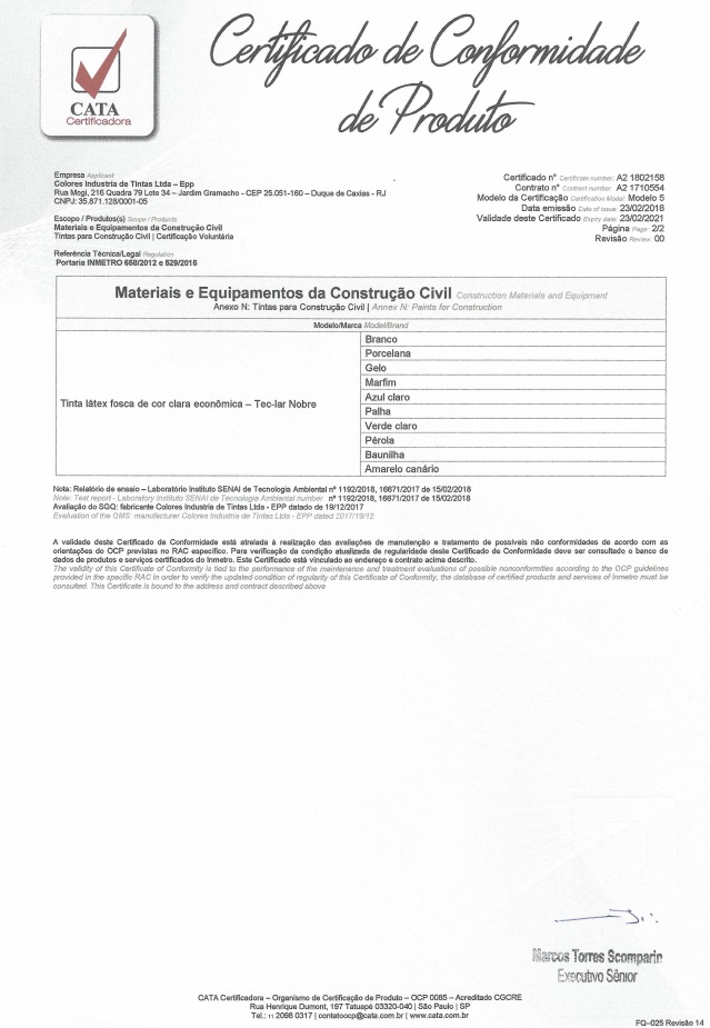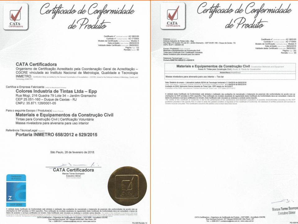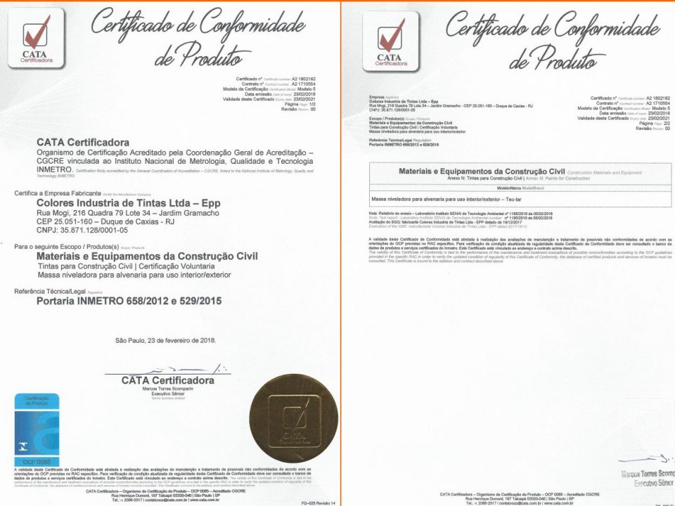 - Agora a Colores tintas é certificado pelo INMETRO. Garantia de qualidade é uma de nossas maiores marcas. Pode confiar em nossos produtos na sua obra!